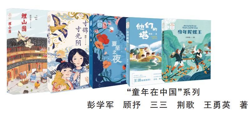 “童年在中国”系列的五部作品讲述了发生在当代中国广阔大地上不同的时代、不同的民族、不同的文化背景下的童年故事,彰显出良善、乐观、坚韧的中国童年精神。《鲤山围》呈现出江西赣南客家围屋这一古老建筑中童年生活的乐观真诚和传统文化的精神光芒。《寸锦寸光阴》以南京的历史古巷黑簪巷和南京云锦文化为背景,讲述了几位少年对中华民族优秀传统文化的传承故事。《夏至之夜》借由北方乡村女孩的视角,来讲述乡村生活中朴素细微的美好情感,表达对生活与命运的纯朴思考。《少年陀螺王》真实描写广西白裤瑶儿童当下的现实生活,展望少数民族儿童在现代文明和乡村传统文化的冲突与融合中的成长路径。《他们的塔》在一座苏州古镇的风土人情和美食浸润中,讲述一位江南少年的精神成长之旅,探索对童年的生命关怀。